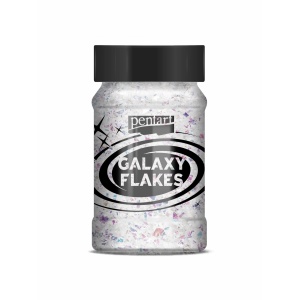 Galaxy Flakes – Irizáló, szabálytalan alakú pelyhek. Használhatjuk az öntapadóra száradó hobbiragasztóval, vagy belekeverhetjük átlátszó gélekbe és lakkokba. A hatás
