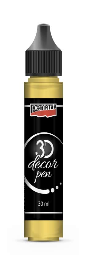 3D dekortoll – Vízbázisú, sűrű festék fémes, átlátszó és normál színekben. Kontúrok rajzolására, pontozásra és félgömbök létrehozására. A fémes színek megegyeznek a Pentart Delicate és a Glamour akrilfestékek árnyalataival. Minden felületen használható. Textilen vasalással fixáljuk (pamutfokozaton, 30 másodpercig, a hátoldaláról). A porcelán és üvegtárgyak 3 nap száradást követően mosogatógépben is tisztíthatóak lesznek (használjunk eco-programot).