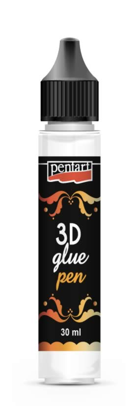 3D ragasztó toll – Vízbázisú, sűrű, öntapadóra száradó ragasztó a dekorfóliához, mely megtartja alakját, így 3D mintákhoz is alkalmazható. Használhatjuk stencillel vagy a tollal rajzolhatunk is. Hagyjuk teljesen megszáradni a ragasztót, ekkor átlátszóvá válik. Ezután finoman simítsuk a felületre a dekorfóliát egy puha, száraz ecsettel vagy az ujjainkkal. Húzzuk le a fóliát. Szükség esetén ismételhetjük a műveletet. Az alkotást vízbázisú lakkal zárhatjuk. Javasoljuk a Pouring lakk használatát, mely kiemeli a fólia színét.
