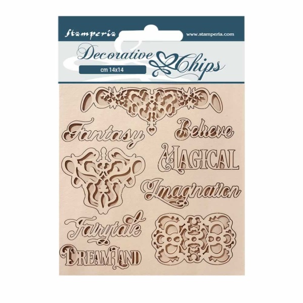 Chipboard cm 14×14 – Magic Forest writing and plates