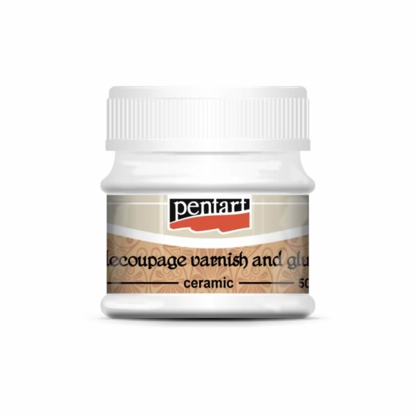 Dekupázs ragasztólakk kerámiára – Vízbázisú ragasztó és lakk egyben a nem porózus felületek, például üveg és mázas kerámia dekupázsolásához. Könnyen és egyenletesen kenhető. Használjuk rizspapír vagy szalvéta alá, valamint fölé is. A normál papírt áztassuk vízbe a felragasztás előtt. A ragasztólakkot mindig középről a szélek felé haladva oszlassuk el a papír tetején, így eltávolíthatjuk a légbuborékokat. Égessük ki a tárgyat 5 percig 140 ° C-on, így mosogatógépben is tisztítható lesz (használjunk eco-programot).
