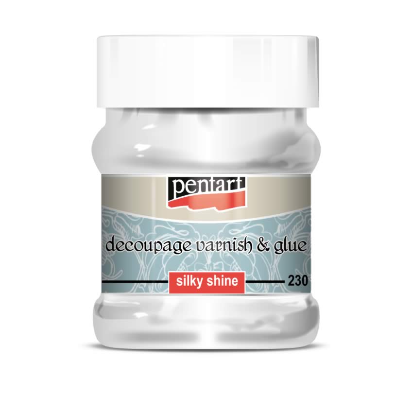 Dekupázs ragasztólakk selyemfényű – Vízbázisú ragasztó és lakk egyben dekupázs technikához. Selyemfényűre szárad. Könnyen és egyenletesen kenhető. Használjuk rizspapír vagy szalvéta alá, valamint fölé is. A normál papírt áztassuk vízbe a felragasztás előtt. A ragasztólakkot mindig középről a szélek felé haladva oszlassuk el a papír tetején, így eltávolíthatjuk a légbuborékokat.