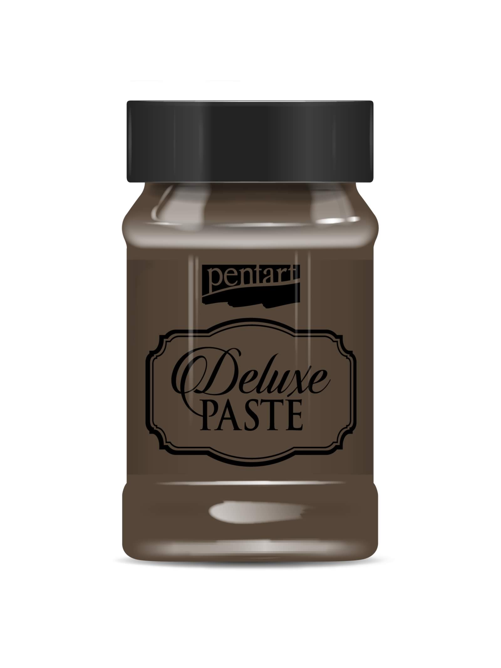 Deluxe paszta – Visszafogottan csillogó, vízbázisú, krémes paszta. Könnyen kenhető, kiváló stencilezéshez. Szivacsecsettel alkalmazva a felület metál hatású és enyhén durva tapintású lesz. Csiszolható.