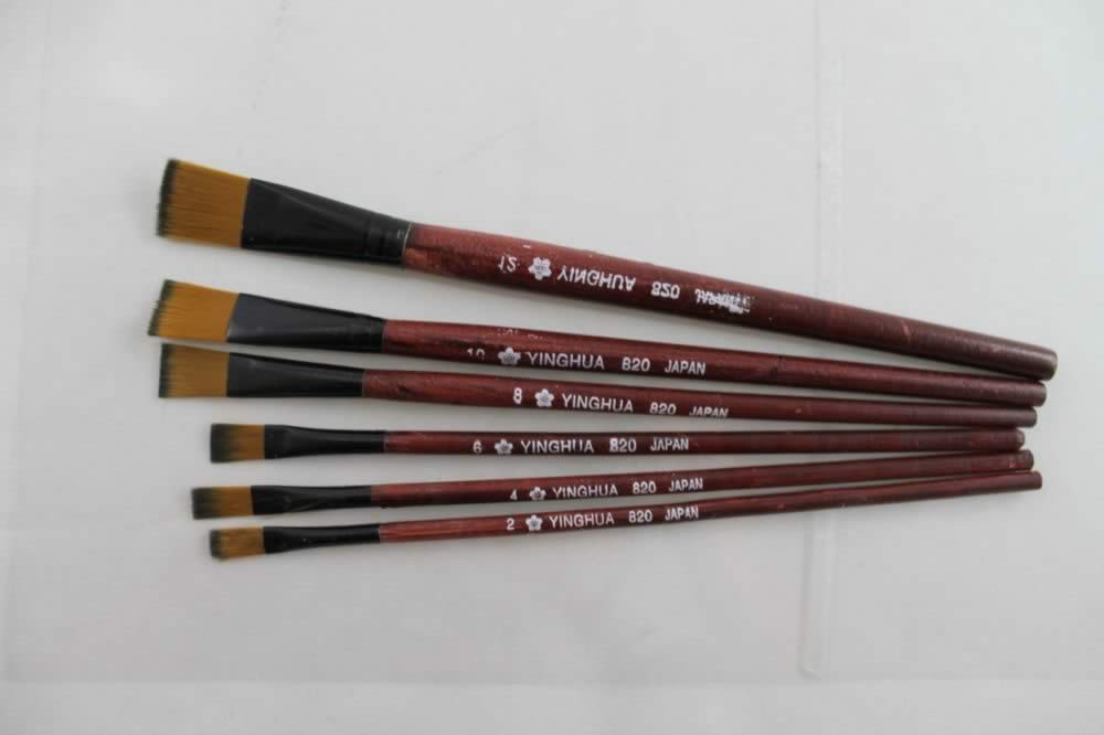 Ecset szett 6 részes, lapos, barna nyelű, méret: 2, 4, 6, 8, 10, 12