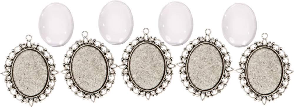 Fém medál lencsével, 30×40 mm (5db/csomag) – ezüst