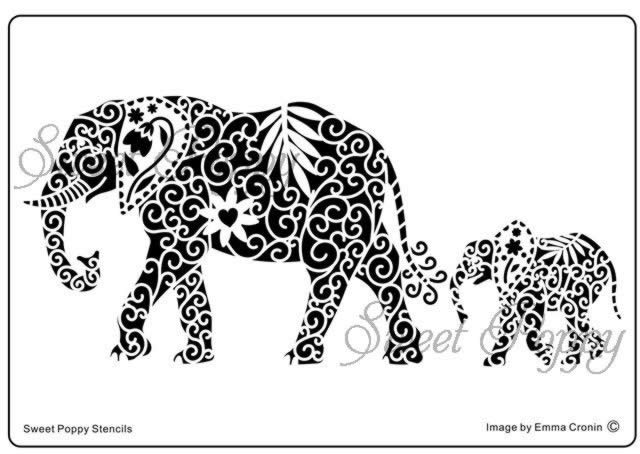 Fém stencil 16 x 11 cm, Elefántok