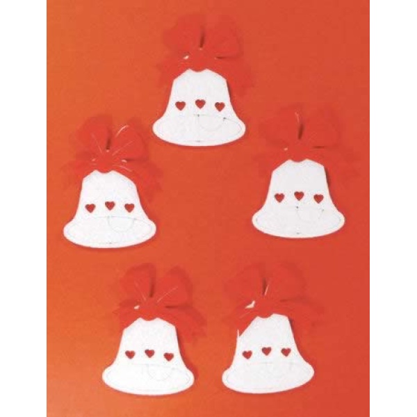 Filcfigura – Fehér harang, piros masnival (5 db/cs, átm. kb.: 6 cm)