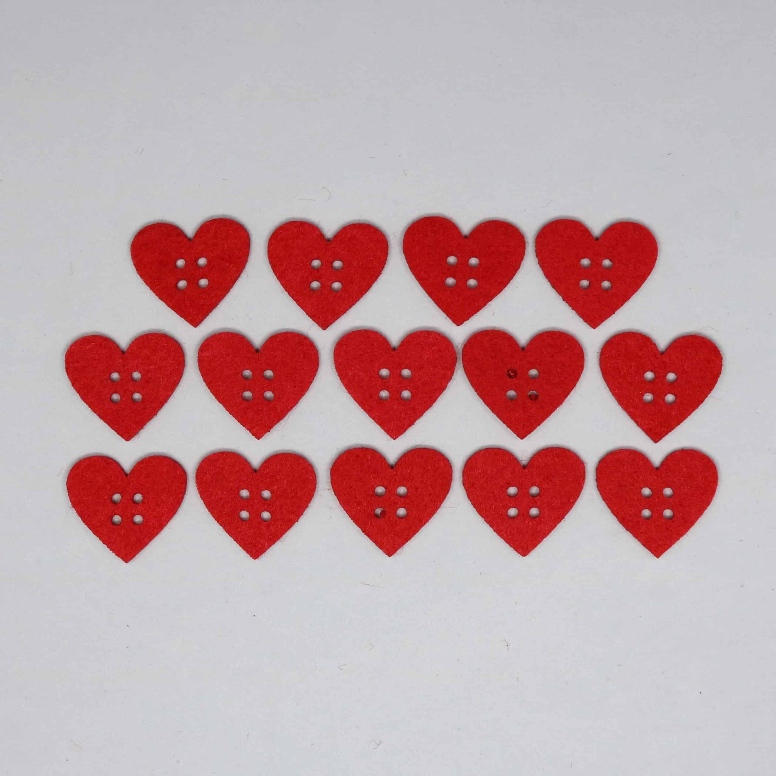 Filcfigura szív alakú „gomb” PIROS (14 db/cs)