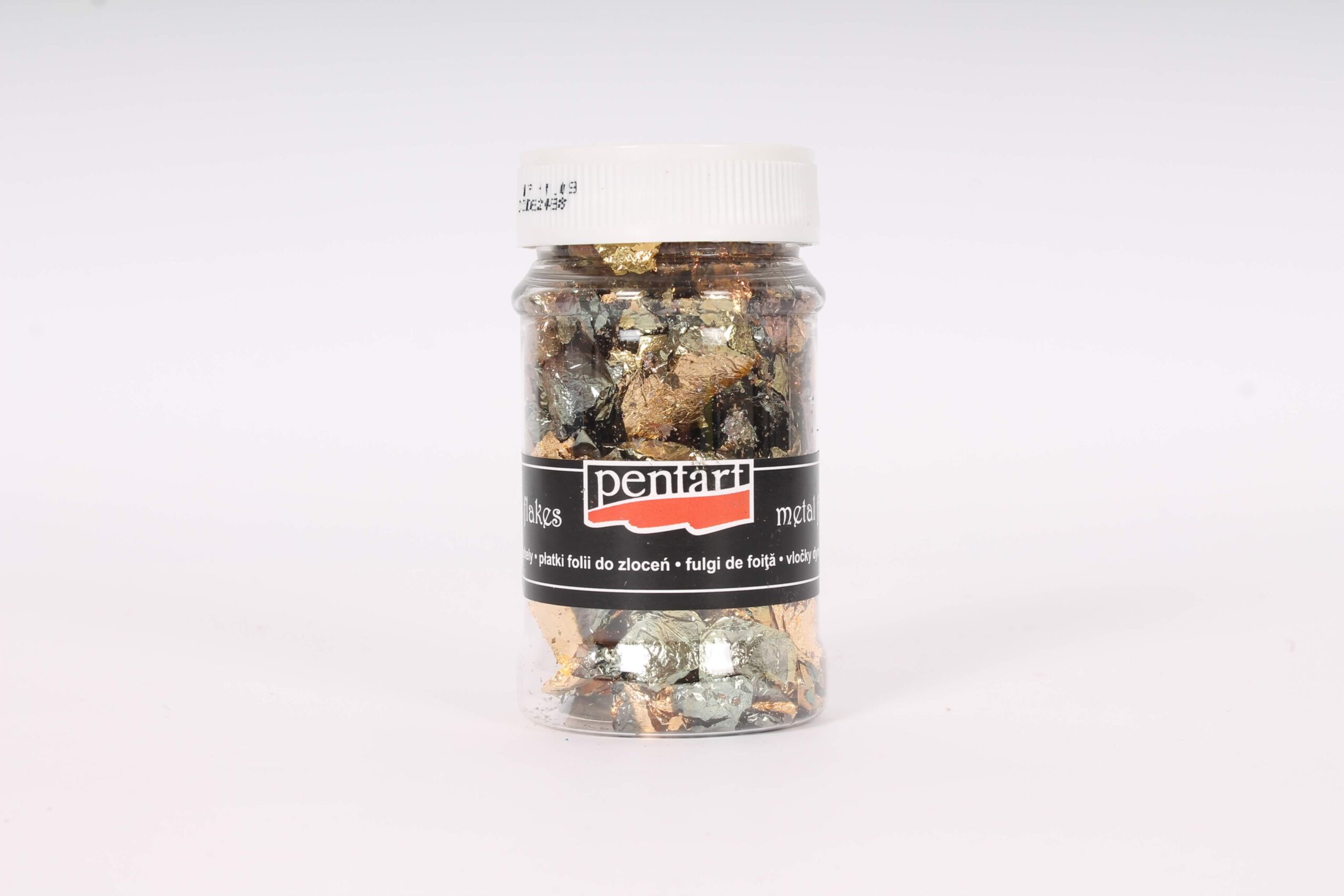 Füstfólia pehely – Füstfólia pehely aranyozott vagy más fémes felületek létrehozására. 1 gramm pelyhet tartalmaz. Használjuk füstfólia ragasztóval majd a felületet védjük oldószeres lakkal vagy Pouring lakkal. Normál, vegyes és foltokban tarka színekben kapható.