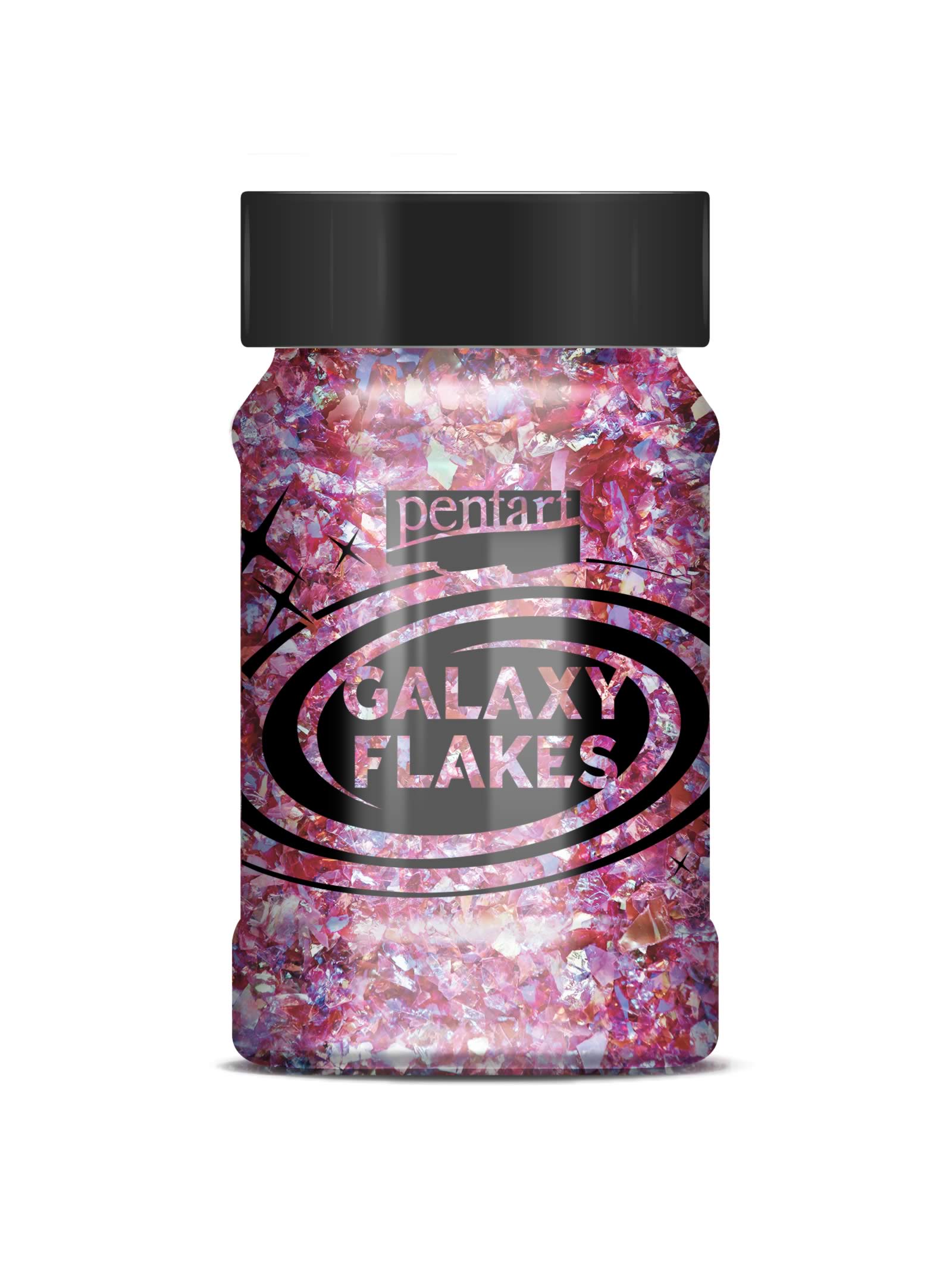 Galaxy Flakes – Irizáló, szabálytalan alakú pelyhek. Használhatjuk az öntapadóra száradó hobbiragasztóval, vagy belekeverhetjük átlátszó gélekbe és lakkokba. A hatás világos és sötét felületeken eltérő.