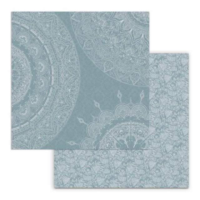 Kétoldalas papír 31,5×30 cm – Mandala részletek világoskék háttéren