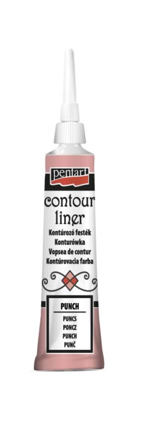 Kontúrozó festék – Vízbázisú, univerzális, sűrű festék, amely bármilyen felületen alkalmazható minták körvonalainak megrajzolására, kiemelésére vagy 3D dekorációk készítésére. Textilen (szintetikus összetétel max.: 20%) a hátoldaláról, sütőpapíron keresztül vasaljuk át a mintát, pamut fokozaton kb. 30 másodpercig, így mosógépben is moshatjuk (kímélő programmal, kifordítva). Üveg és porcelán esetén hagyjunk 24 óra száradási időt, majd égessük ki a tárgyat sütőben, 100°C-on 30 percig. Ezt követően a tárgy mosogatógépben is tisztítható lesz (használjunk eco-programot). Normál, metál, sötétben világító és neon színekben kapható.