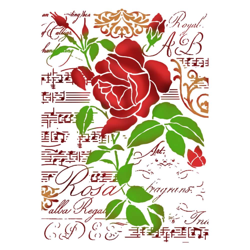 Stencil G méret 21 x 29,7 cm – Rózsa és kotta
