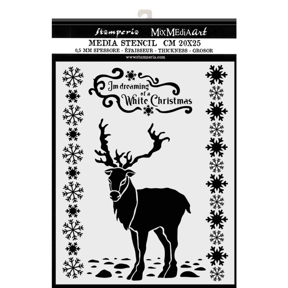 Stencil TD méret 30×25 cm/ 0,5 mm – Fehér rénszarvas