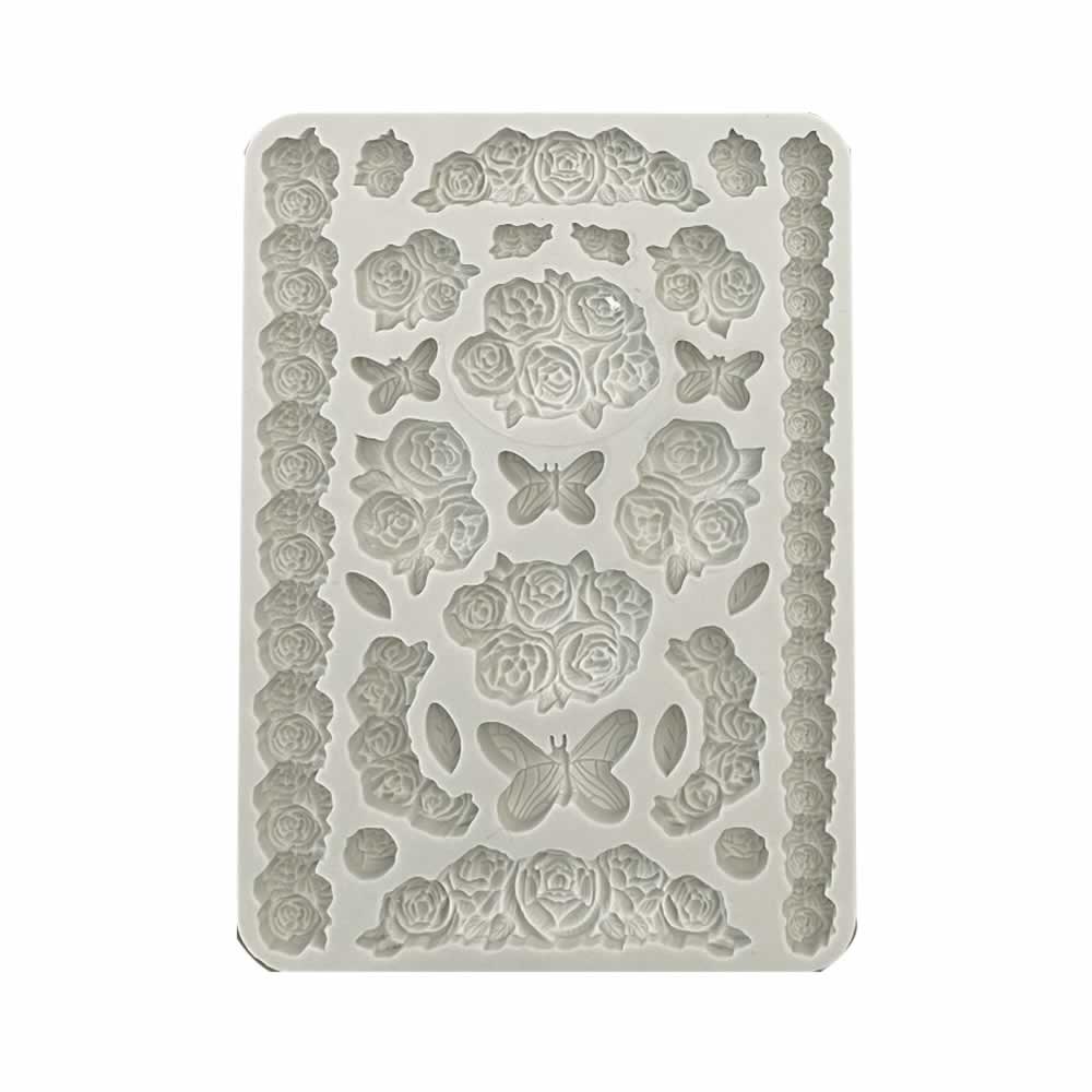 Szilikon öntőformák A5 – Shabby Rose roses and butterfly