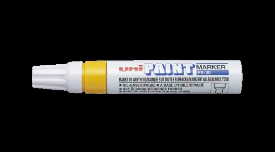 Az UNI PX-30 lakkfilc a legvastagabb hegyű marker a Paint marker sorozatban. Kiválóan alkalmas nagyobb felületek jelölésére, figyelemfelkeltő feliratok készítésére vagy dekorációs célokra. A robusztus kialakítású marker strapabíró, jól látható írásképet biztosít, és megőrzi tartósságát extrém körülmények között is. Szinte bármilyen felületre ír – legyen az fém, műanyag, fa vagy üveg –, miközben ellenáll a víznek, kopásnak, időjárásnak és magasabb hőmérsékletnek is.