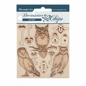 Chipboard cm 14×14 – Vintage Library Keys and owls