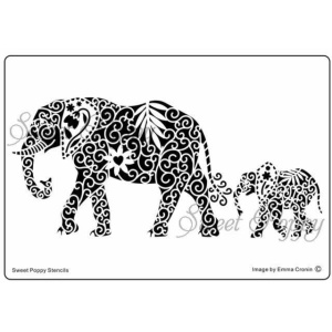 Fém stencil 16 x 11 cm, Elefántok