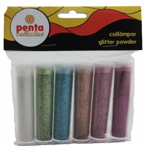 Színes csillámpor 6 x 3,5ml vegyes színek I.